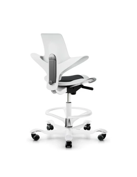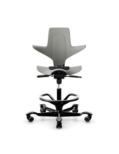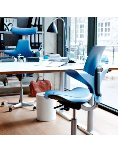 Le siège CAPISCO PULS 8010 de HÄG incite aux mouvements, on peut le régler pour avoir une position assise traditionnelle ou une position assis-debout avec une amplitude du vérin importante.