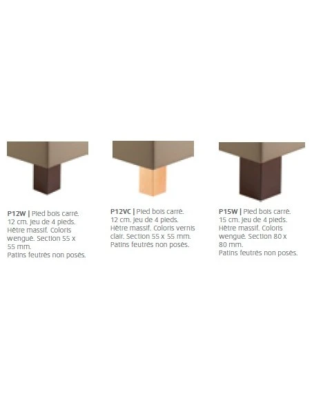 - Sommier nu : Le sommier est fourni sans pieds, mais vous avez la possibilité de choisir parmi plusieurs pieds en option pour personnaliser votre lit selon vos préférences.