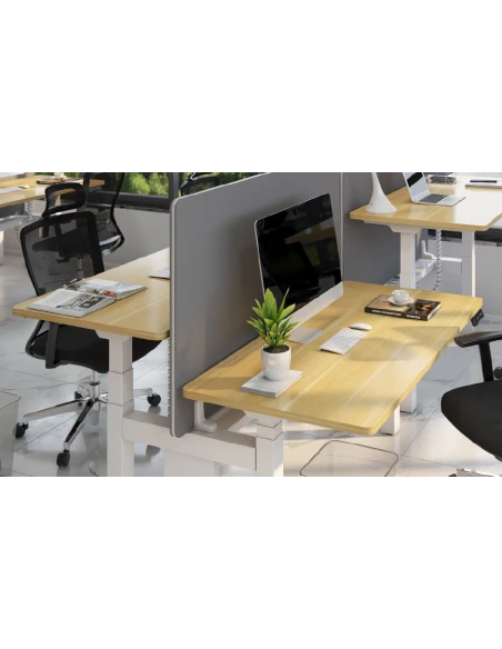 - Optimisation de l’espace : Idéal pour les bureaux ouverts ou les espaces de coworking, il permet de maximiser l’utilisation de la surface tout en offrant une fonctionnalité optimale pour deux utilisateurs.