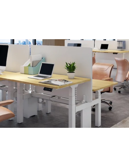 Chaque côté du bureau offre un réglage de hauteur individuel, permettant à deux collaborateurs de personnaliser leur poste de travail selon leurs besoins tout en restant proches.